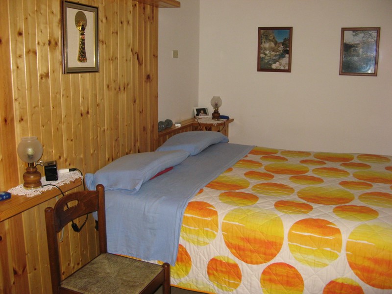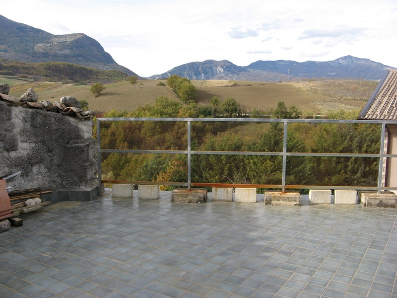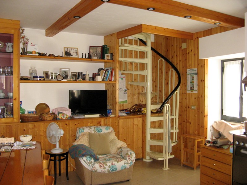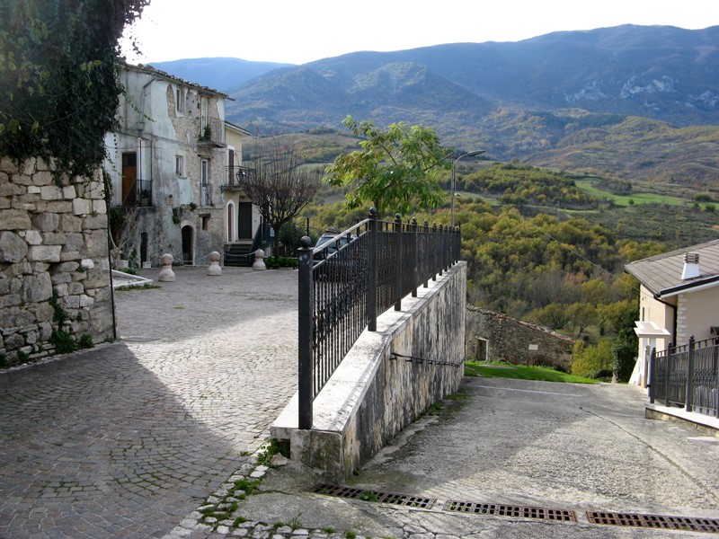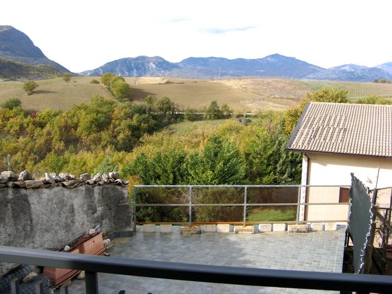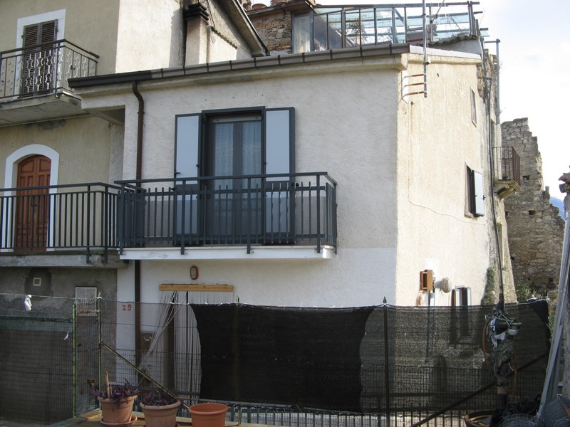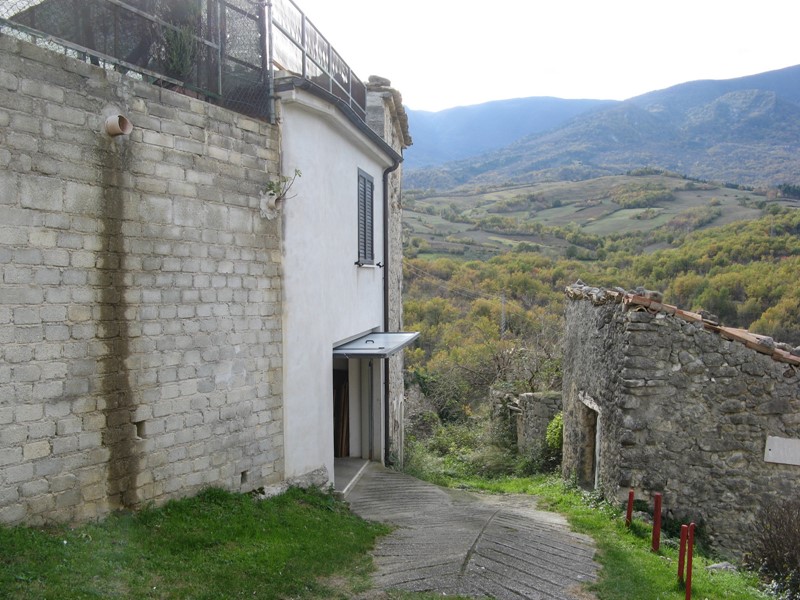 Casa di tre livelli (114 mq.l.) con 2 camere da letto, 2 bagni e 2 terrazzi, garage/magazzino di 58 mq e piccolo giardino di 53 mq, in un angolo caratteristico del paese con splendido panorama su monti e valli del Parco Nazionale della Maiella. La casa è stata ristrutturata in anni recenti, è in ottime condizioni, arredata con tutte le utenze allacciate ed immediatamente abitabile. Si raggiunge l’abitazione con una strada comunale su cui sono presenti due ingressi a diversi livelli. L’ingresso inferiore al piano terra è fiancheggiato da un terrazzo pavimentato con notevole veduta ed una legnaia nel seminterrato, entrando in casa ci si trova in un atrio cui fa seguito una gradevole sala soggiorno/pranzo con una cucina totalmente attrezzata, allo stesso livello è presente un bagno con doccia. Una scala a chiocciola permette di salire al piano primo a cui si può anche accedere direttamente dall’esterno tramite l’ingresso superiore. Il primo piano è diviso in due ambienti per mezzo di una semi-parete rivestita in legno; da un lato una camera da letto matrimoniale e dall’altro un soggiorno con balcone ed il secondo bagno. Salendo ancora con la scala a chiocciola si arriva al secondo piano mansardato, con finestra ed abbaino, in cui trova posto una ulteriore camera da letto matrimoniale e capienti ripostigli.