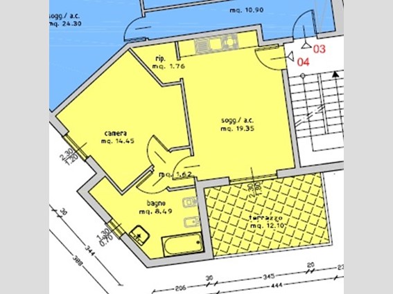 L’appartamento in vendita è BI locale di 54 mq + 12 mq di terrazzo, al primo piano, senza ascensore. Composto da: