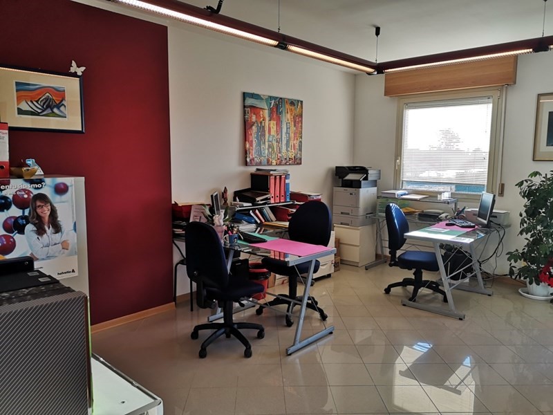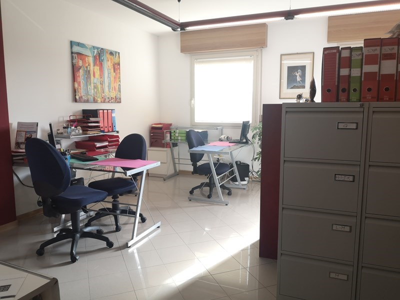 Primo piano, mq 65 oltre terrazza mq 3.5. Ristrutturato, facente parte di un complesso adibito ad uffici. Molto luminoso. Composto da ingresso, sala riunioni con doppio accesso,ampio salone che può essere diviso in più postazioni lavorative, bagno e terrazzo. Parcheggio con illuminazione serale. Riscaldamento e condizionamento centralizzato con contacalorie. Arredato, cablato, zona coperta da fibra.