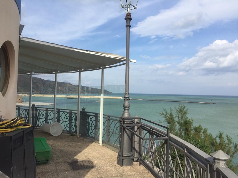 Immobile con destinazione commerciale, sito nella splendida cornice di Castellammare del Golfo, posizionato sul bordo di Piazza Petrolo, si affaccia sul suggestivo porto di Castellammare del Golfo, con vista mare da San Vito Lo Capo all'aeroporto di Punta Raisi. il fabbricato ha una forma circolare e si sviluppa su tre livelli, ove su un piano esiste una zona wine bar che si affaccia sulla veranda esterna che gira attorno al corpo di fabbrica, inoltre esiste una zona esterna a giardino adibito a posti a sedere, un piano e' adibito a zona ristorante, mentre il piano sottostante e' adibito a zona lavorazione, cucina e servizi del personale. I tre livelli sono collegati da un ascensore interno a vetri.
