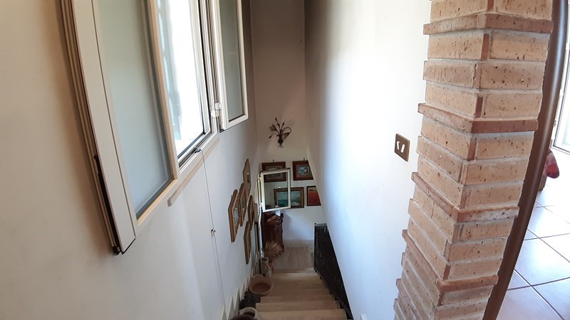 La villa si sviluppa su tre piani: dal piano terra si accede alla zona giorno dove ritroviamo una sala da pranzo ed un salotto con un bellissimo camino fatto a mano; a livello con la parte giorno c'è una terrazza panoramica molto ampia e spaziosa con porticato che permette di mangiare all'aperto o di godere del fresco pomeridiano per una lettura o un semplice momento di relax in completa autonomia. Sempre su questo piano vi è una cucina abitabile, un ripostiglio, una lavanderia, un bagno e due camere da letto. Dalla sala da pranzo si accede attraverso una scala interna al primo piano, dove abbiamo un bagno e due camere da letto con un terrazzo a livello di mq 50 super panoramico. Il piano interrato infine e destinato a cantina;