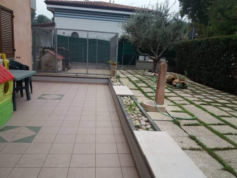 sono 3 bifamiliari vicine..ma no condominio..piano terra con giardino di 120 mq già recintato x bambini e box x cane se serve..la casa invece è di 2 piani di 80 mq ciascuno..collegata da scala interna..al primo piano sala e cucina..bagno con vasca idromassaggio..2 camere e 2 terrazzi..al piano inferiore ...2o bagno lavanderia con doccia..garage con basculante elettrica...2a cucina con camino e 2o portone di ingresso...con aria condizionata e zanzariere