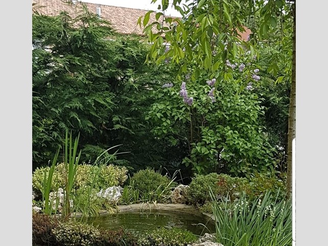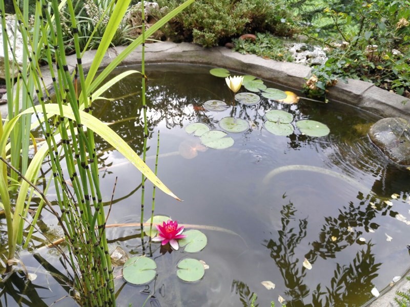 IL giardino è molto curato, ricco di piante ornamentali e circondato da una siepe sui 3 lati oltre ad un laghetto interrato ed illuminato con lampioncini di design esclusivo.