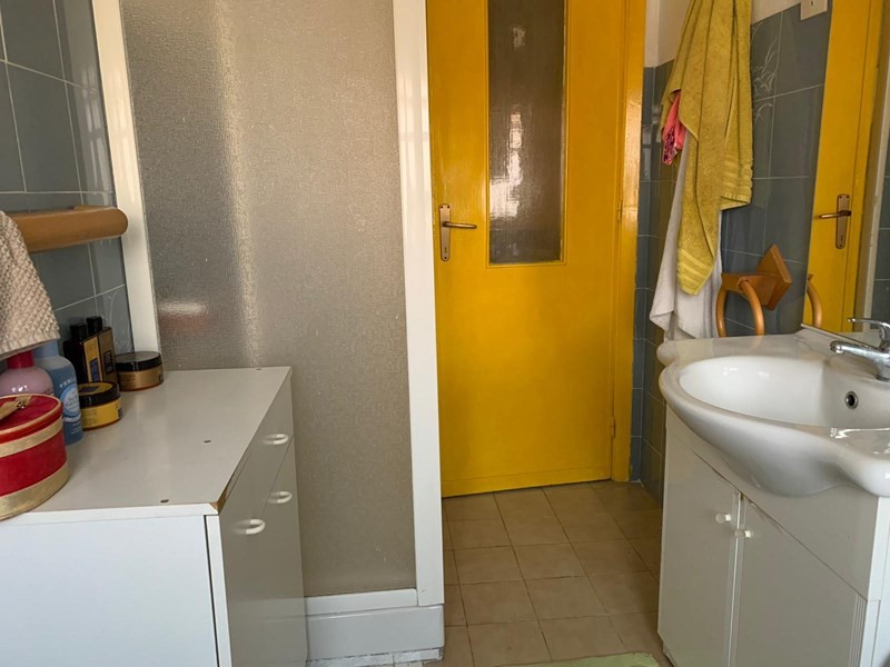 Il bagno, piccolo ma funzionale, è dotato di un'ampia doccia rettangolare e di uno scaldabagno elettrico.