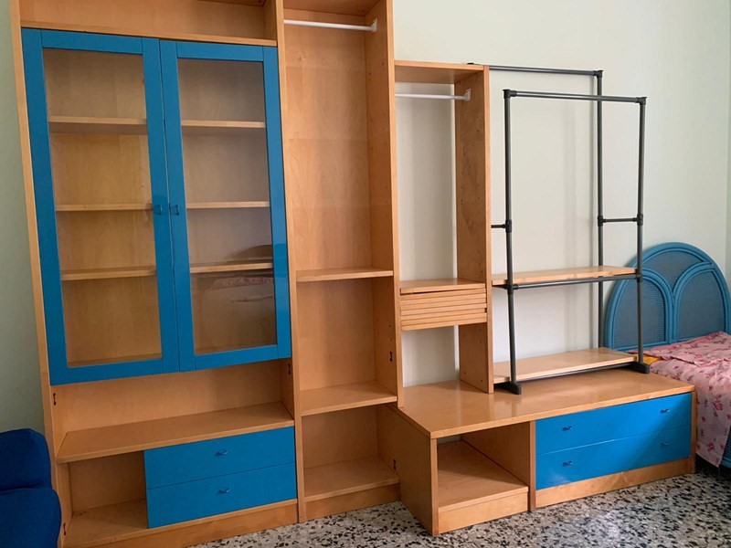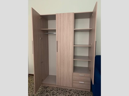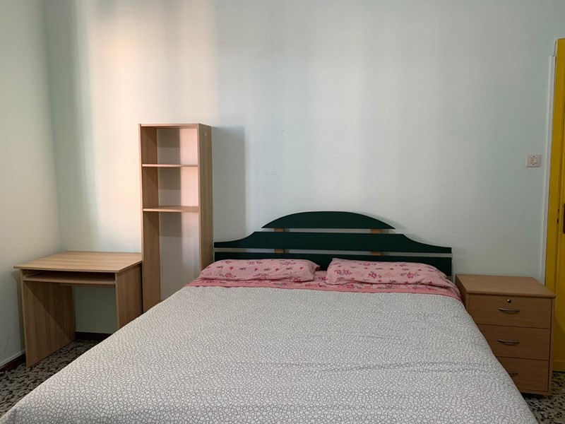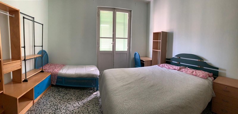 L'appartamento, situato al secondo piano senza ascensore, si presenta come un trivano dalle ampie metrature: le 2 camere da letto doppie sono entrambe di ca 20 mq. Attualmente è rimasta disponibile una camera doppia composta da 1 letto singolo ed 1 letto matrimoniale, ciascuno corredato da completo letto copripiumino e piumino, scrivania ed armadio + guardaroba. Dalla camera si accede ad un balconcino chiuso dal quale è possibile stendere esternamente il bucato, attrezzato con un piccolo armadio-ripostiglio.