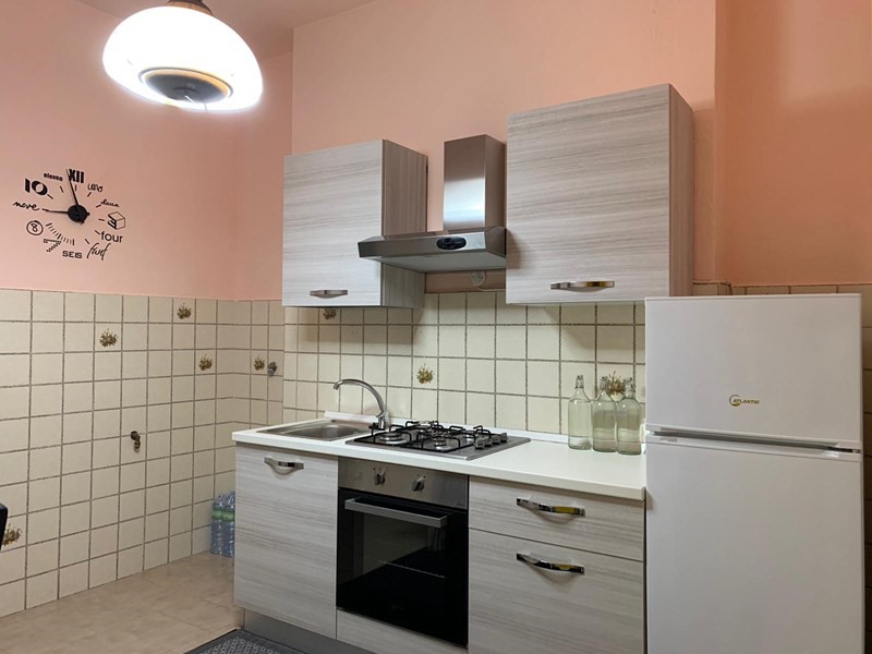 La cucina, capiente ed attrezzata con tavolo e sedie per 4, è stata recentemente acquistata e dispone di forno, frigo/freezer combinato oltre ad un angolo con lavatrice Indesit da 6 kg, anch'essa di recente acquisto.