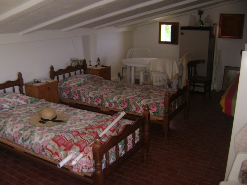 2) Soggiorno con camino, tre stanze letto, bagno andito con scala in legno per mansarda più ripostiglio.
