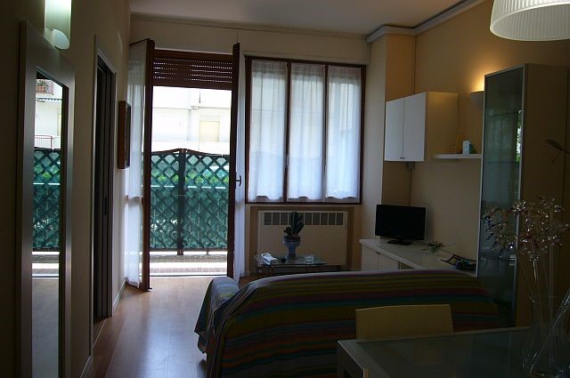 In un condominio in zona centrale di Milano Marittima, a due passi dal mare, al piano terra, grazioso appartamento composto da soggiorno con angolo cottura, due camere da letto e bagno.