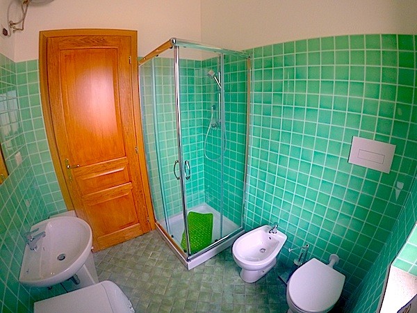 Nel bagno ensuite: wc, bidet, doccia, asciugacapelli, asciugamani, stendibiancheria, carta igienica