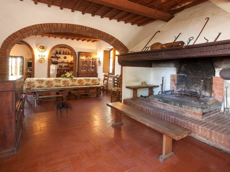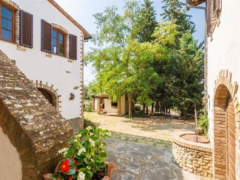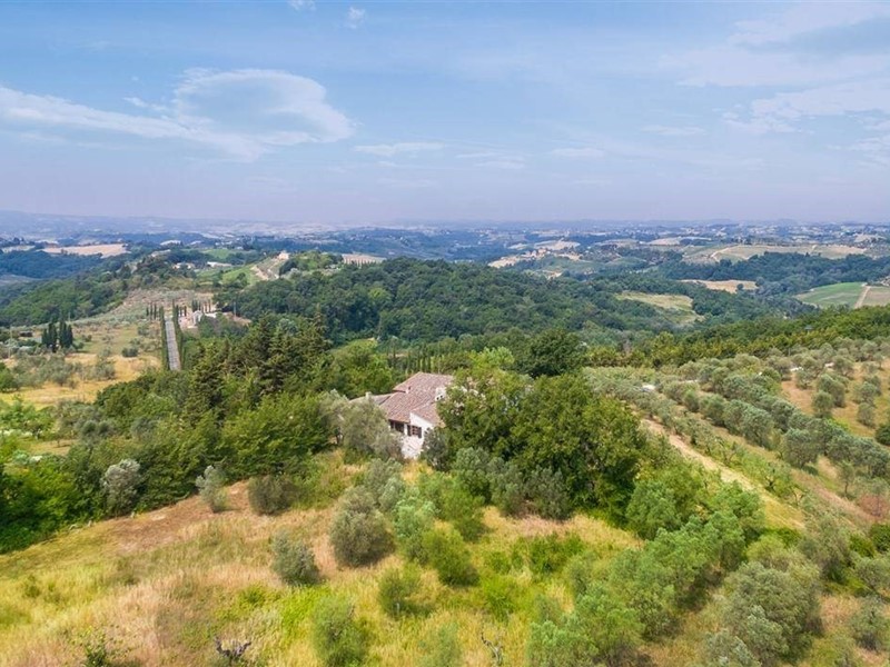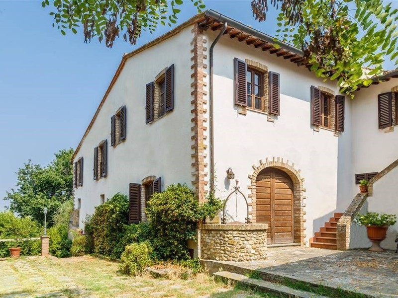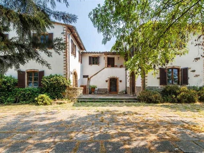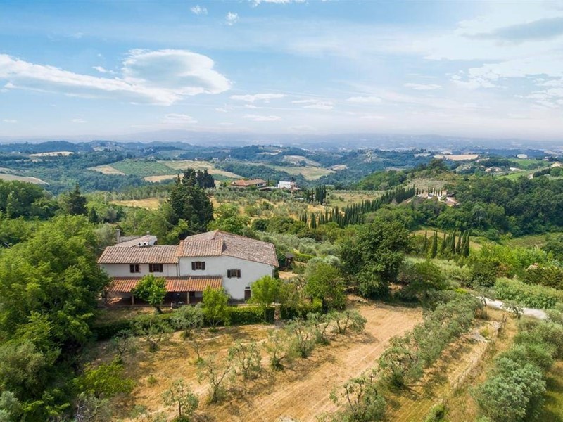 Bellissimo Podere con antica casa colonica originaria del 1.400 ubicata sulla sommità di una collina e terreno agricolo di 10 ettari. L'immobile ha una superficie complessiva di circa 800 mq, catastalmente è suddiviso in tre unità immobiliari di cui due ad abitazione ed una ad uso magazzino. Abitazione Padronale: piano terreno con ampio vano ad uso cucina/zona pranzo/soggiorno con grande camino, camera matrimoniale, bagno, piccolo ripostiglio, locale caldaia e sottoscala; piano primo (collegato al piano terreno mediante scala interna ed esterna) con ingresso, tre ampi locali ad uso soggiorno, due ripostigli, disimpegno, quattro camere da letto e due bagni. Seconda abitazione: piano terreno con ingresso/soggiorno/angolo cottura, bagno e scala interna atta a collegare il piano primo con due camere da letto. A comune delle due abitazioni risultano l'ampio portico posto sul retro del fabbricato, il forno distaccato dal fabbricato, la corte centrale ove trovasi gli ingressi. Fa parte dell'immobile anche un ampio magazzino elevato due piani fuori terra dove si trovano tre cisterne fuori terra in muratura utilizzate per deposito acque piovane. A comune delle tre unità sopradescritte ci sono i quattro ingressi carrabili e la resede a corredo che si sviluppa sui quattro lati liberi del fabbricato. La casa è circondata da un grande giardino dal quale si può ammirare una magnifica vista panoramica e stare a contatto con la natura tra olivi, limoni, piante aromatiche e fiori. Terreno ad uso agricolo di 10 ettari con seminativo, oliveto 2 ettari e bosco. La proprietà si trova nel Comune di Montespertoli paese a forte vocazione turistica, è dunque ideale per essere adibita ad agriturismo-casa vacanze ma può anche essere destinata a residenza privata avendo un'ubicazione ideale per chi vuole abitare in campagna ma al tempo stesso vicino al centro ed a tutti i servizi. Classe Energetica: g