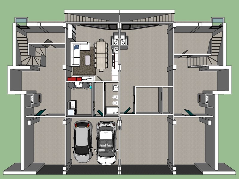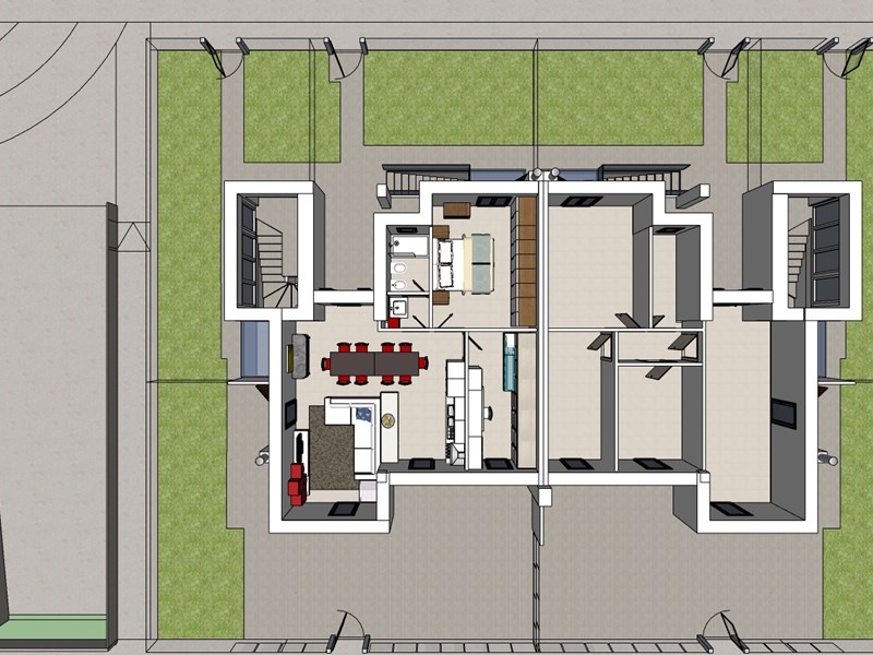 Ampi balconi e terrazzi sui lati consento l’illuminazione naturale della casa in modo da ridurre al minimo l’uso della luce artificiale.