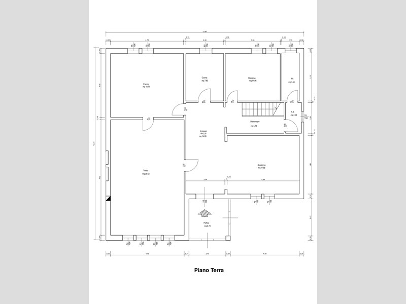 Soluzione composta da ingresso, soggiorno, sala da pranzo, salone e cucina con porta finestra su giardino, tinello, dispensa e bagno.