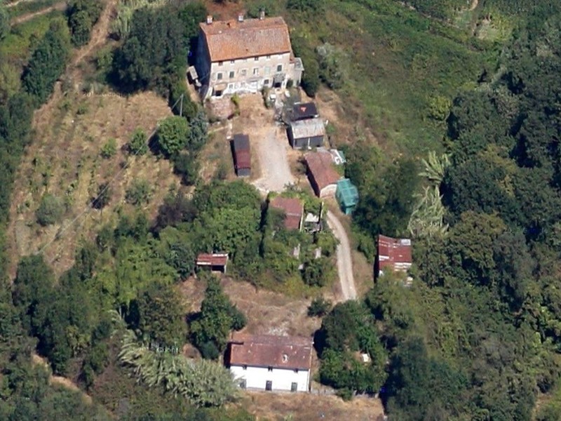 3,3 km dalle mura di  Lucca zona nord  proprietà addossata a una dolce collina, ma in posizione soleggiata e tranquilla costituita da terreno di  mq 30.000 tutto un corpo di cui al centro di esso si trovano tre corpi di fabbrica di epoca remota anticamente facenti parte di una fattoria. Un fabbricato di mq 310 destinato a civile abitazione costituito da tre unità immobiliari elevato a tre piani; un fabbricato per civile abitazione di mq 147 elevato a due piani e un fabbricato adibito a cascina  posto al centro delle due abitazioni elevato a due piani in parte demolito con possibilità di recuperare il volume esistente per una superficie complessiva di  mq 450 e  vari annessi ad uso ripostiglio. Si accede a detta proprietà per mezzo di un diritto di passo con strada privata sino a raggiungere il complesso immobiliare. Il terreno a corredo del compendio immobiliare è destinato in gran parte a bosco ceduo e presentava colture di uliveto e vigneto ora dismessi. Necessari lavori di restauro e rimessa in pristino della strada di accesso attualmente solo percorribile solo con auto fuoristrada. €.550.000.Rif.3329