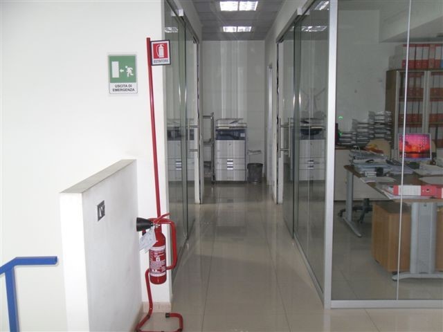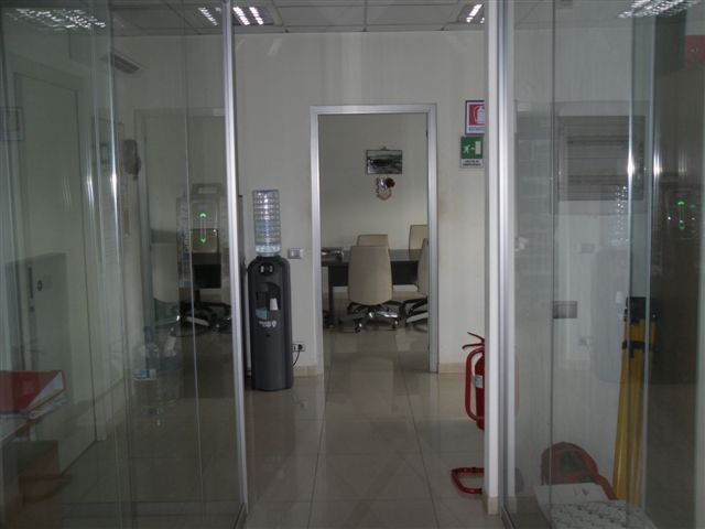 Serramente degli uffici con isolanti con taglio termico, controsoffitto e pareti coibentate per risparmio energetico, pavimento galleggiante.