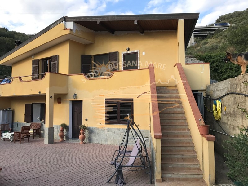Villa bifamiliare con cortile piastrellato e terreno a 800 metri dal paese di Pompeiana.