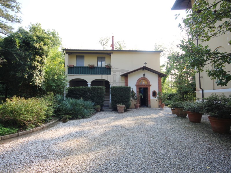 Ubicata a 5 km dalle mura di Lucca in una zona molto verde e boschiva, villa stile liberty perfettamente mantenuta con tutti i materiali di periodo. Il complesso è costituito da una fabbricato principale e da un grande annesso distaccato per un totale di circa mq.400 oltre a cappella privata, annesso ripostiglio , garage, forno, appartamento  per custode di circa mq.100 . Il terreno di circa.7.000 mq.in parte giardino e bosco. La casa padronale ( villa) si compone al piano seminterrato  di cantina con vari locali di servizio. Al piano terra di: ampia veranda chiusa, ingresso, salone, cucina, sala pranzo con caminetto, studio wc. Con una ampia scala in marmo pregiato si sale al piano primo composto di: quattro camere, due bagni e ampia terrazza dalla quale si gode la vista del territorio. Al piano secondo troviamo in una torretta bellissima altana/solarium. Perfette condizioni di manutenzione generali. 1.600.000 Rich.