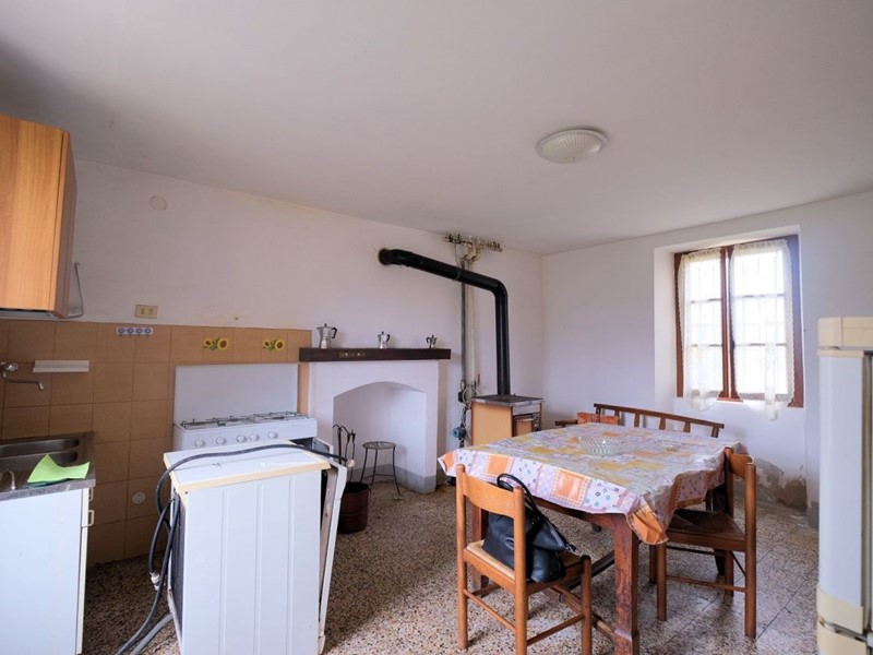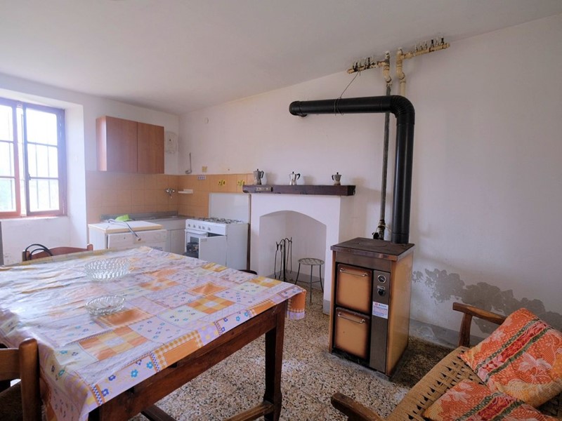 Cascina in posizione soleggiata e dominante sviluppata su due livelli, al piano terra, ingresso su salone, cucina, bagno e ripostiglio, vano scala: al piano primo, tre camere, bagno, terrazza per una superficie di mq 200 terreno con entrostante due fabbricati adibiti a deposito di mq, 163 e fabbricato in pietra diruto,terreni per una superficie di mq 4.220