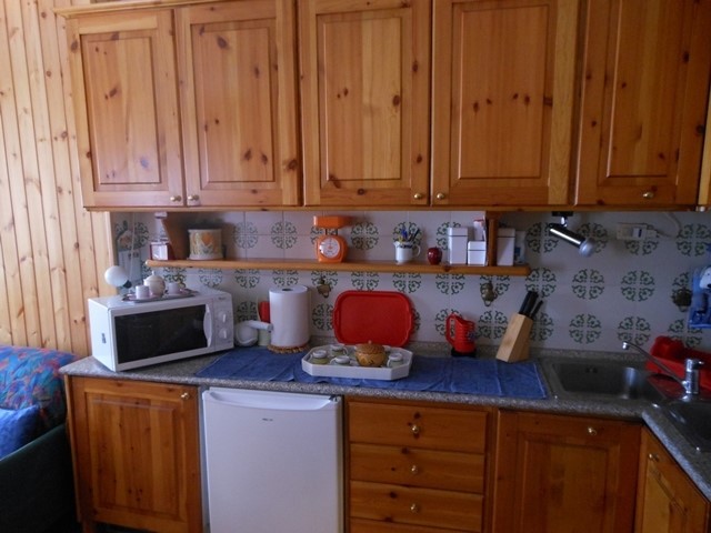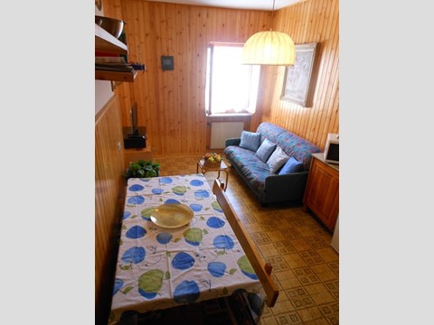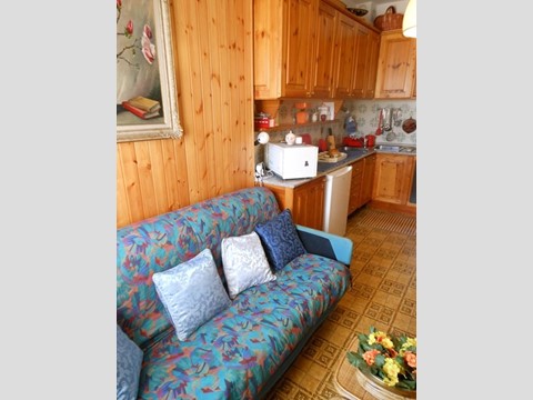 Bilocale con giardino a terrazzo recintato di circa 8 x 4 mt: ingresso a soggiorno con parete-cottura, una camera, servizi, cantina con accesso dal terrazzo.