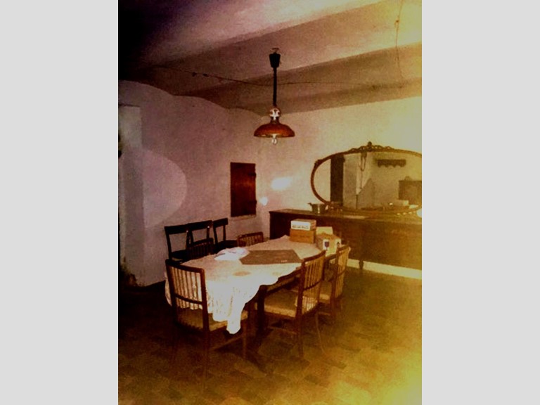 Casa indipendente su tre lati composta al piano terra da locale di sgombero, cucina, servizi con scala interna che porta al piano primo dove ci sono 3 camere. Ulteriore fabbricato composto da fienile e magazzino.