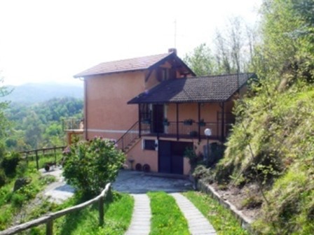 Piccola tenuta composta da casa su due piani: al piano terra cucina, sala da pranzo con forno e servizi, scala in marmo che porta al piano primo dove troviamo un salone grande, una camera matrimoniale, bagno e terrazza panoramica; al piano superiore una camera mansardata con servizi. Terreno di 6000 mq pianeggiante e bosco. Ulteriore casetta in legno, stalla e garage attigui alla proprietà.