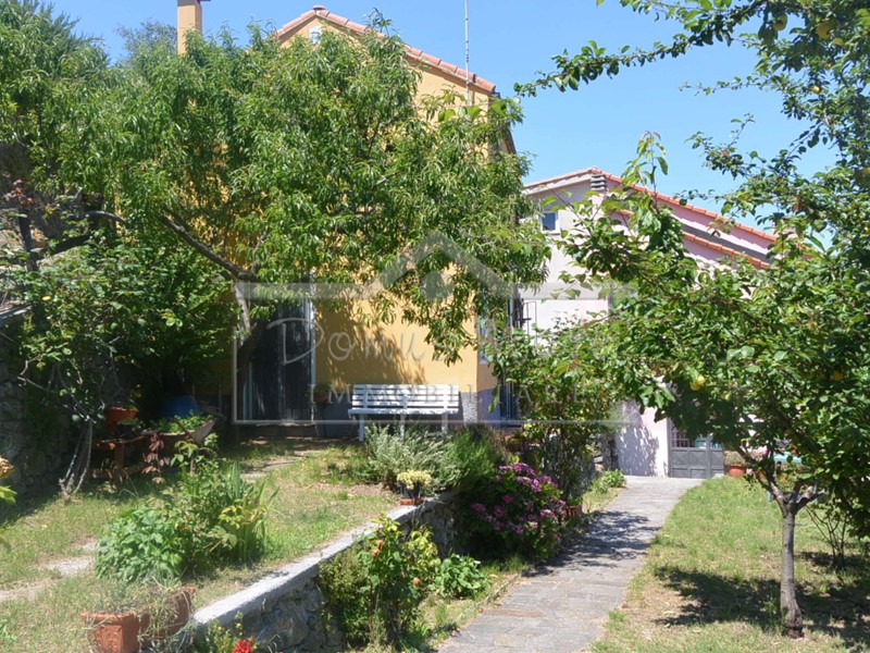Al piano rialzato, un accogliente soggiorno con caminetto invita a momenti di relax, mentre la cucina abitabile, dotata di accesso diretto al giardino, è ideale per cene all'aperto e convivialità. Completano il piano un pratico bagno di servizio. Al secondo piano, troviamo due camere da letto spaziose e un ampio bagno, perfetto per la famiglia. Un delizioso terrazzino offre una vista panoramica, ideale per godere del clima mite ligure.