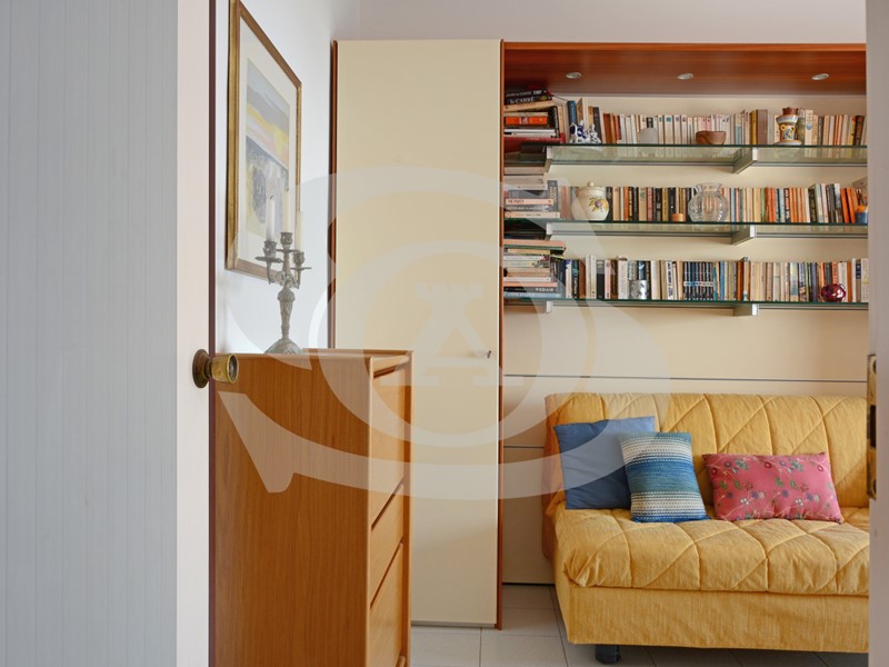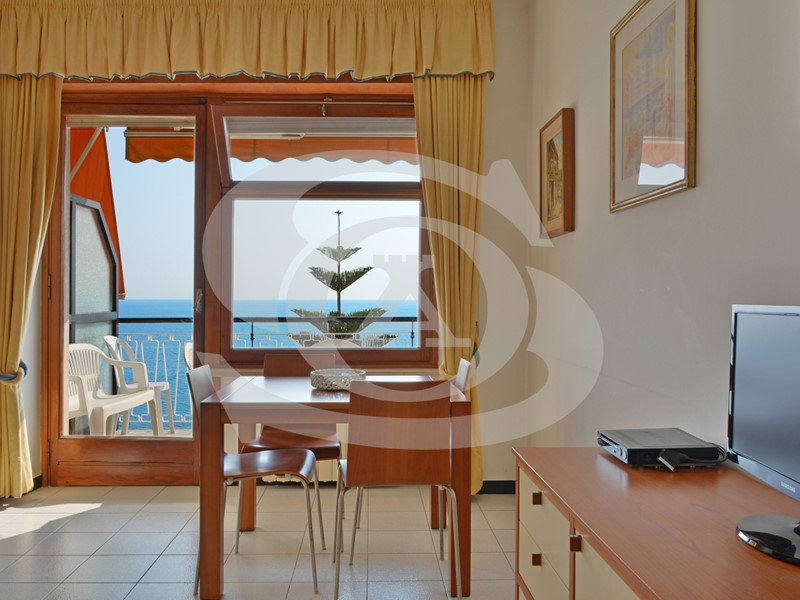 Si accede al Bilocale con ingresso su zona giorno organizzata con Soggiorno con terrazzo vista mare e Cucinino separato, zona notte ha Camera da letto matrimoniale con accesso al terrazzo e vista mare.