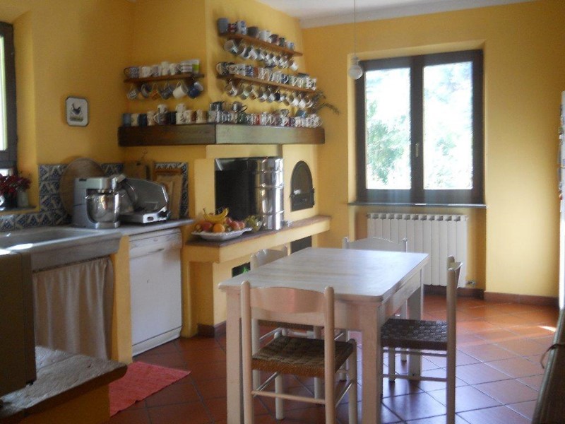CALCI - Zona panoramica con vista stupenda, molto luminosa, CASA SINGOLA di circa 280 mq. e circa 15.000 mq. di terreno con circa 700 piante di olivi in produzione ben tenuti e piccolo annesso. L'abitazione è composta da: al piano terra ingresso, salone doppio con camino di circa 70 mq., cucina abitabile grande in muratura con camino e forno a legna, altra stanza, bagno di servizio e locale caldaia, al 1° piano grande disimpegno, ripostiglio con finestra, 4 camere matrimonili di cui 2 con gabina armadi e doppi servizi, oltre soffitta e terrazza di circa 35 mq. Glasse F EPgl 143.1920