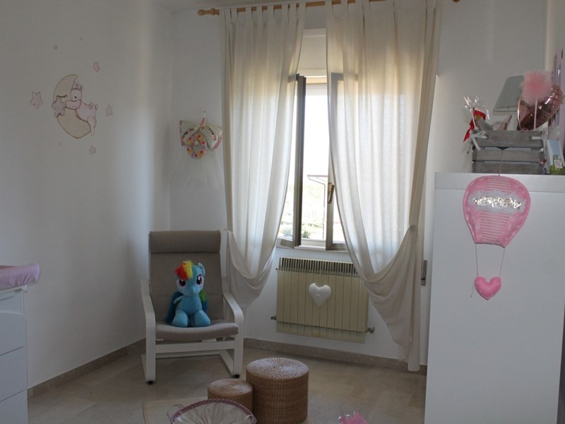 Si compone di corridoio, cucina e sala open space, due camere da letto, bagno, ripostiglio e 2 Balconi. E' dotato di garage, cantina e soffitta. Il palazzo dispone di due ampi terrazzi condominiali. Vi sono inoltre aree verdi fruibili sul retro. Prezzo richiesto € 129.000,00