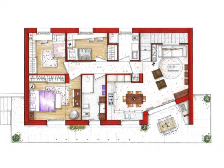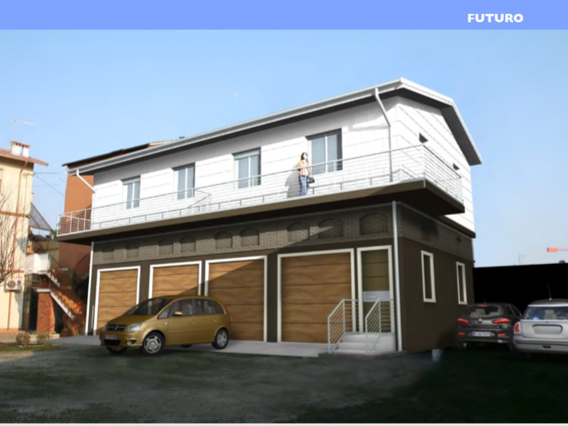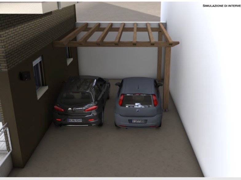 Le immagini, qui riprodotte, propongono lo stato attuale dell'immobile e lo studio di alcune soluzioni per un ipotetico stato futuro.
