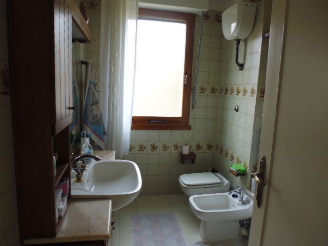 Appartamento di 100 mq al piano primo in condominio di 6 appartamenti, buonissime condizioni composto da: ingresso con disimpegno, cucina abitabile con terrazzo, sala, tre camere da letto e due bagni. Annesso al piano terreno garage.