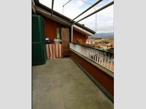 Appartamento al piano 1°, su due livelli, composto da: ingresso, ampio soggiorno con camino, angolo cottura, wc, ampia terrazza con vista Apuane e vallata Magra al piano d’ingresso, camera, cameretta, soppalco e bagno al piano superiore. Posto auto.