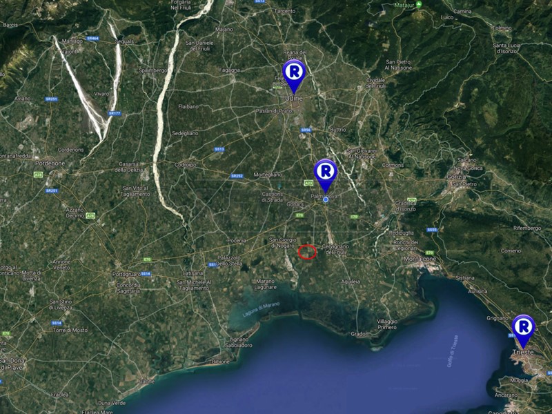 TORVISCOSA: Terreno edificabile a destinazione residenziale della superficie di mq 4.657. Il terreno è posizionato a ridosso della Statale 14 e sbocca nella traversa a via del Molino attraverso una servitù di transito a peso di un altro lotto, ha la possibilità di allacciarsi facilmente a tutti i servizi della rete comunale, ed è molto vicino sia al centro del paese di Torviscosa che alla grande viabilità identificata dalla Strada Statale 14 che collega Trieste a Venezia. La descrizione dell’immobile, la planimetria riqualificata e le metrature riportate non costituiscono elementi contrattuali ma sono solo indicativi.