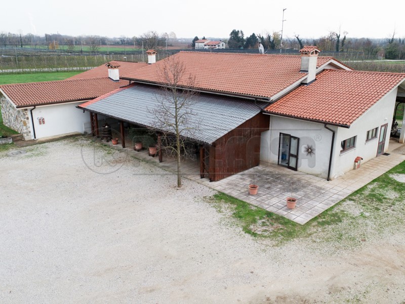 MORTEGLIANO, frazione Chiasiellis. Azienda agricola con annesso locale ad uso agriturismo e abitazione. La superficie complessiva della proprietà è di 4 ettari di cui una parte adibita a produzione di mele Golden-Gala-Fuji e una parte a vigna Merlot e Friulano. Il locale agriturismo, adiacente all'abitazione è dotato di 45 posti a sedere interni, 40 posti sotto il porticato esterno e 30 posti a sedere in taverna. Il fabbricato è dotato di un impianto fotovoltaico da 20 Kw con relativo contributo Gse di circa € 10.000/annuali fino al 2029. I terreni sono serviti da un impianto fisso di irrigazione a pioggia. Sono compresi nella vendita due trattori agricoli e diverse attrezzature specifiche per le lavorazioni che vengono effettuate nell'azienda.