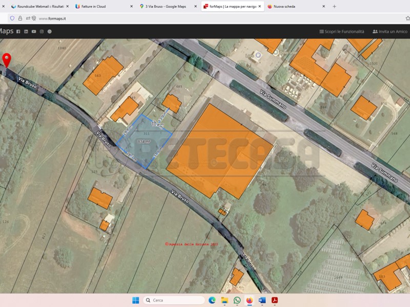 MONTECCHIO PREC.: di sicuro interesse per la posizione tranquilla e riparata dal traffico, lotto di terreno edificabile di circa 900 mq. con capacità edificatoria di 1.600 metri cubi realizzabili fino a 3 piani fuori terra, ma ideale anche per un'unità abitativa uni o bi-familiare. Per questioni di privacy la mappa non indica esattamente il luogo dell'immobile.