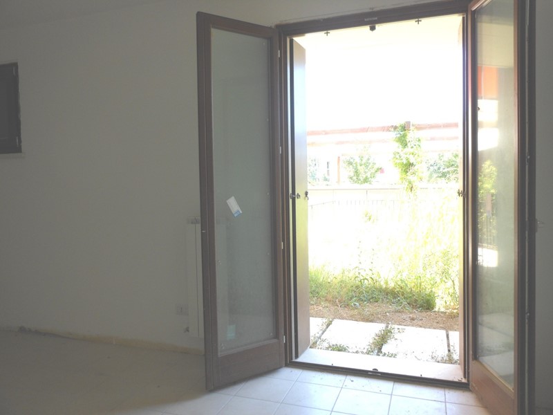 JESI - Zona tranquilla e ben servita, vendiamo appartamento al piano terra con ingresso nel soggiorno con angolo cottura, camera matrimoniale e bagno. Piccolo giardino privato e garage. Prezzo trattabile.