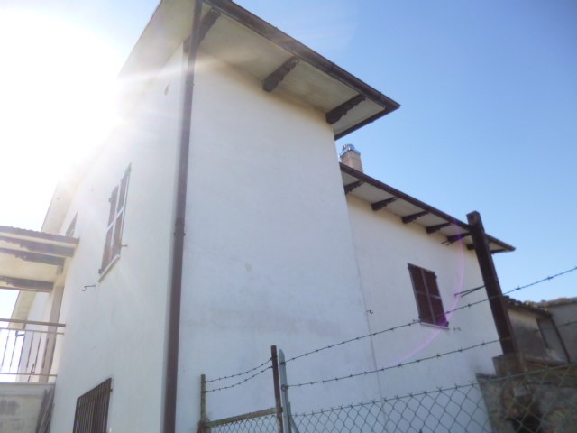 POGGIO SAN MARCELLO - PORZIONE DI EX CASA COLONICA CON ANNESSA CORTE DI MQ 6000 CA, PIANTUMATA CON ULIVI E ALBERI DA FRUTTA, IMMOBILE CON AL PIANO TERRA 2 GARAGE DI CA. 100 MQ, PIANO PRIMO CON INGRESSO, CUCINOTTO, TINELLO CON CAMINETTO, SALA, DISIMPEGNO NOTTE CON BAGNO, 2 CAMERE DA LETTO MATRIMONIALI, SCALA RETRATTILE PER ACCEDERE AD AMPIO LOCALE SOTTOTETTO. € 105MILA TRATTABILE
