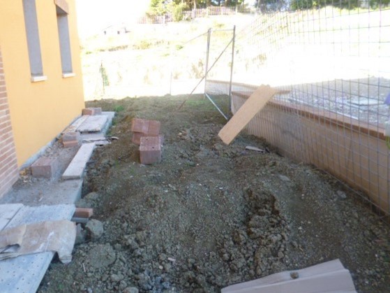APPARTAMENTO AL PIANO TERRA INGR. INDIPENDENTE DI 90 MQ. NETTI CON GIARDINO. INGRESSO NEL SALONE GRANDE CON AMPIA TERRAZZA CON ANGOLO COTTURA, 1 CAMERA MATRIMONIALE, 1 CAMERA MEDIA, 1 CAMERETTA E BAGNO. GARAGE E TAVERNA. L'APPARTAMENTO E' AL GREZZO. RISCALDAMENTO A PAVIMENTO, FOTOVOLTAICO.ECC. CLASSE A VISTA MOZZAFIATO
