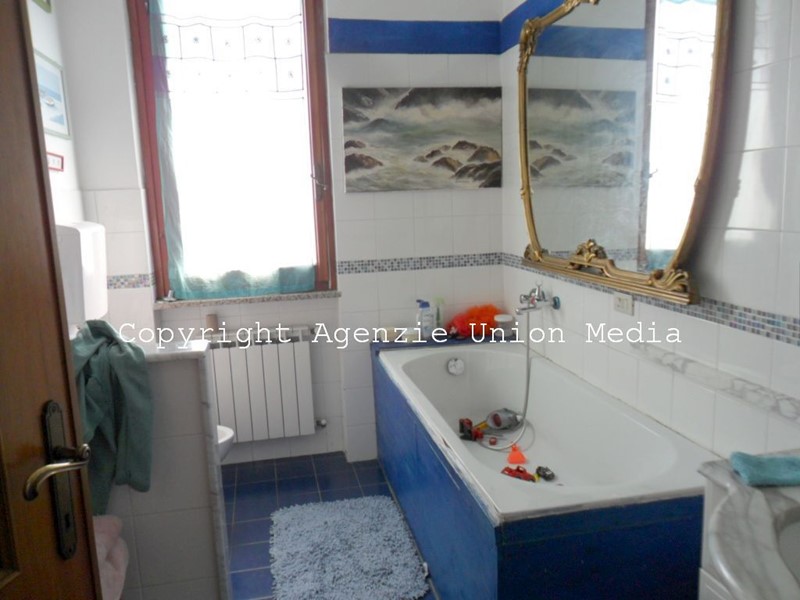 Ameglia, al piano, porzione di bifamiliare disposta su due livelli con Giardino di 800 mq. Divisione interna: piano terra - cucina abitabile, ampio salone doppio con camino, bagno, ripostiglio. Accesso al giardino e posti auto. Al piano superiore collegato da comoda scala interna e da scala esterna: tre camere matrimoniali, salotto, bagno, possibilità di ricavare comodamente unità immobiliare indipendente al piano primo. Zona soleggiata e comoda a tutti i servizi.