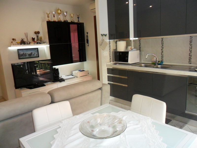 Luni Mare, in ottima palazzina recentemente ristrutturata nelle parti condominiali, splendido appartamento bilocale FINEMENTE RISTRUTTURATO posto al piano primo con balcone coperto pranzabile. L' immobile è così suddiviso: soggiorno con angolo cottura con balcone, disimpegno, vano lavanderia, camera matrimoniale, bagno con vasca idromassaggio. Posto auto. Aria condizionata. Termoautonomo. Luminosissimo. Parzialmente arredato.