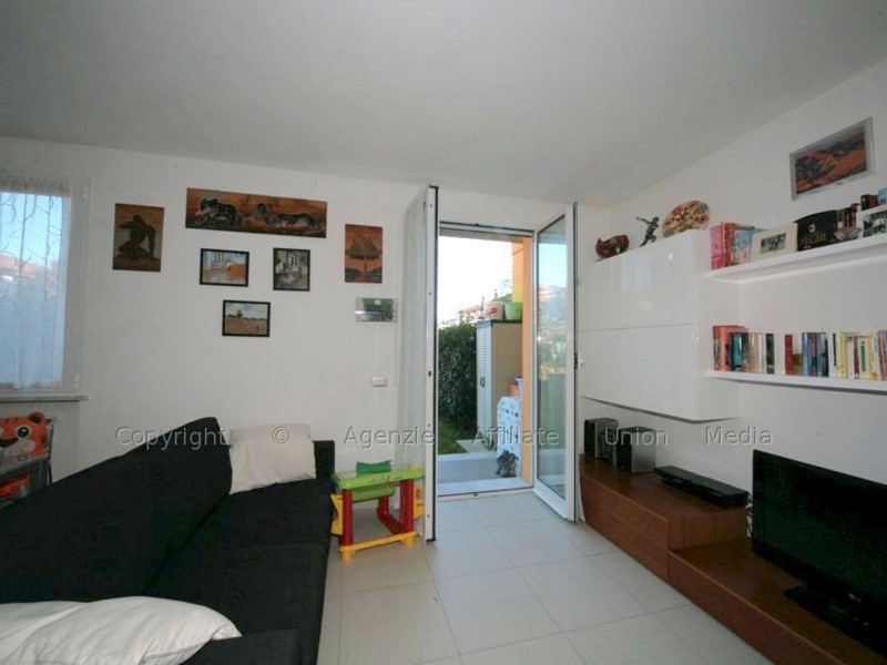 Pian di Follo. In palazzina di recente costruzione,ben esposta e soleggiata, perfetta, appartamento con ingresso indipendente e giardino privato su due lati, composto da ingresso in spazioso soggiorno con zona cottura, camera matrimoniale, cameretta, bagno, cantina al piano semi interrato, posto auto esterno scoperto. Rifiniture extra capitolato. Riscaldamento autonomo, impianto di allarme, zanzariere in tutte le finestre.