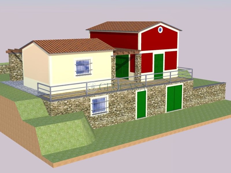 MASIGNANO di ARCOLA: Terreno edificabile con progetto approvato per piccola costruzione uni-famigliare su due livelli di circa 60mq più garage/taverna collegato da un portico. Posizione dominante con vista panoramica mare/monti in circa 1500mq di terreno