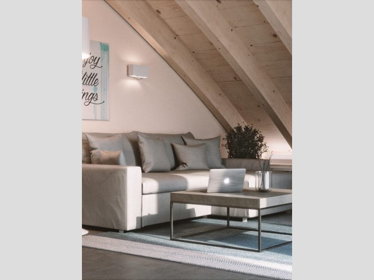 In zona Residenziale, defilata dal traffico, Bifamiliare libera su 3 lati di nuova fattura, disposta su due livelli con giardino e posti auto. Ingresso al piano terra nella sala con cucina a vista, camera e bagno. Piano superiore mansardato seconda camera, studio o cameretta e secondo servizio.