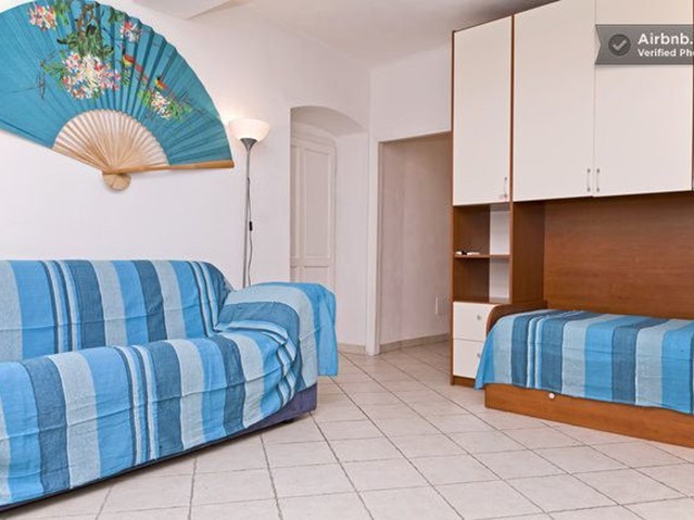 Rif 78911 Ameglia, centro storico, appartamento bilocale ammobiliato, soggiorno con mobile a ponte con letto matrimoniale, divano letto matrimoniale, cucina, bagno. Affitto estivo