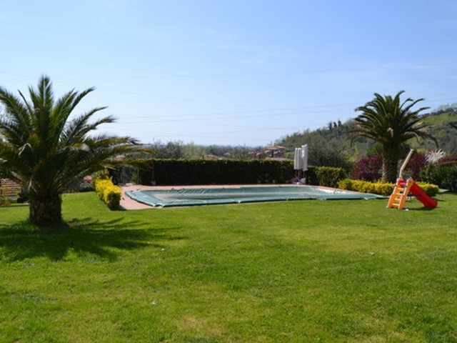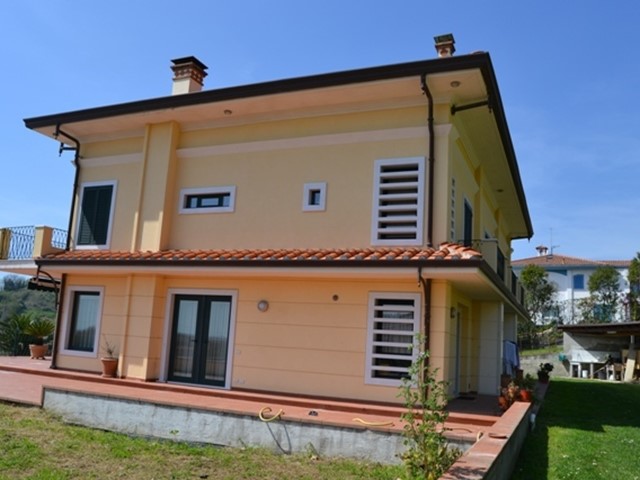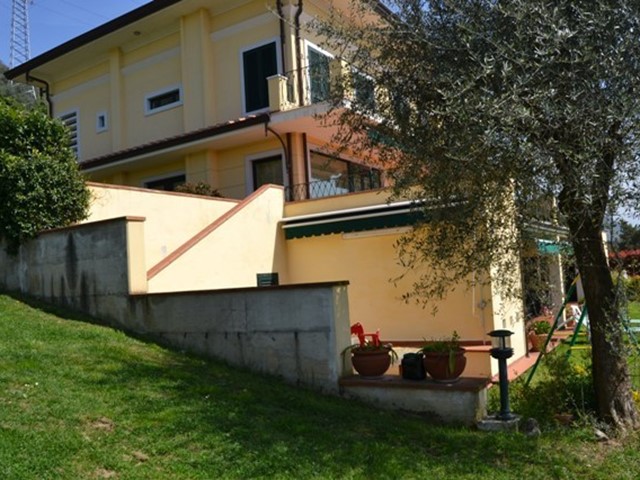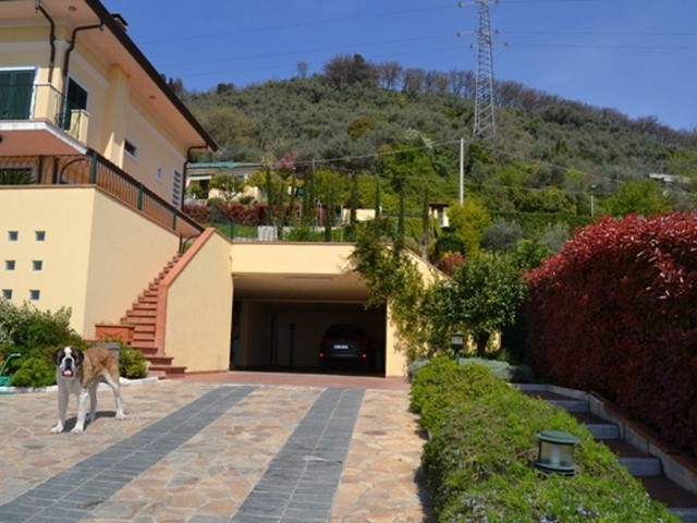 Carrara nella zona piu' esclusiva della citta' villa di ampia metratura con piscina e spettacolare vista mare con circa 4000 mq. di giardino. L'immobile e' elevato su quattro livelli e attualmente e' diviso in tre unita' abitative.Ogni porzione ad eccezione della parte centrale che non dispone di mansarda e' composta da: al piano terra ampia taverna con camino,angolo cottura,bagno di servizio,al piano primo:cucina abitabile con balcone,soggiorno con terrazza vista mare,bagno di servizio, Al piano secondo:camera matrimoniale con terrazza vista mare e bagno con vasca idromassaggio,cameretta con bagno e balconcino,al piano mansardato open space con ripostiglio e bagno di servizio,garage quadruplo,posti auto,cantine,legnaia,termoautonomo.Ogni porzione dispone di proprie utenze.