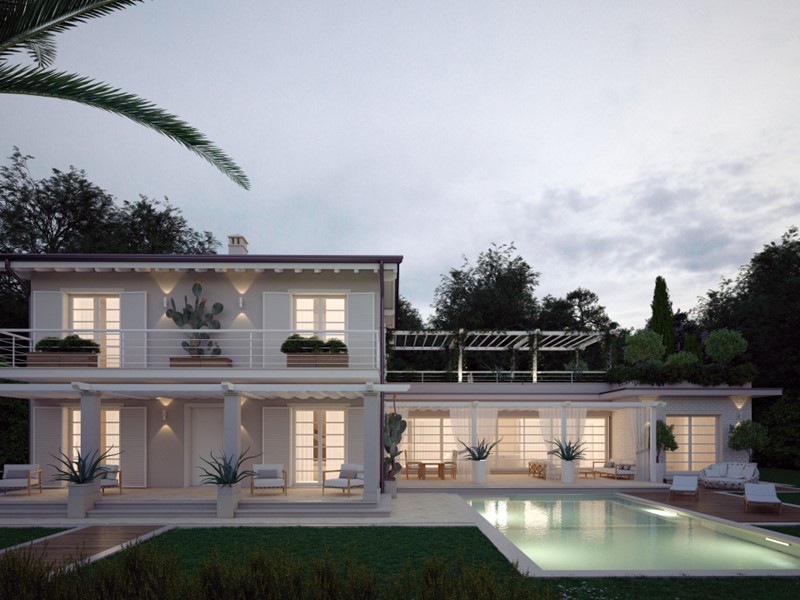 Forte dei Marmi vendesi ampio fabbricato bifamiliare, da trasformare secondo progetto, in una Villa monofamiliare di lusso con piscina e finiture di pregio. Il lotto si estende su un terreno molto soleggiato di più di 1.100mq in una zona residenziale riservata; di pertinenza anche una delle due stradine private adiacenti.