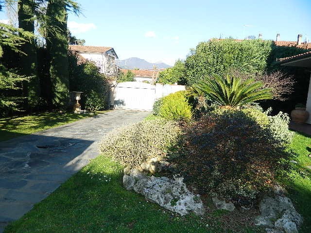 Forte dei Marmi a pochi passi dal centro ampia villa con giardino circostante di circa 700 mq.su tre livelli in ottimo stato composta da: P.T. ingresso,soggiorno doppio,cucina abitabile,camera matrimoniale con parquet,bagno con vasca,1°P. tre camere da letto matrimoniali tutte con proprio bagno due con doccia e uno con vasca,terrazzino coperto,al piano mansardato con ottima altezza open space di 90 mq,con parquet,ampia cantina,due posti auto coperti,impianto di allarme,impianto di irrigazione settoriale.