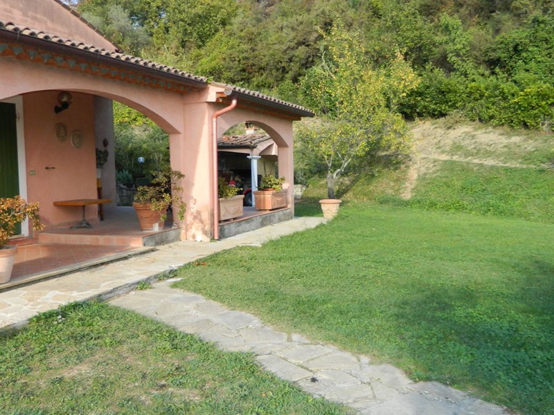 Sarzana Prulla in zona panoramica immersa nella quiete e nel verde ampia villa su due livelli con giardino di circa 3000 mq. composta da: ingresso da ampio porticato sui due lati della casa con terrazza abitabile panoramica,salone doppio con camino,cucina abitabile,due camere da letto matrimoniali di cui una con bagno e doccia,altro bagno al piano con vasca,al piano superiore salottino,camera matrimoniale con bagno e vasca,al piano inferiore secondo appartamento cosi' composto : ingresso in soggiorno con canna fumaria per installazione eventuale camino o stufa,cucina a vista,camera matrimoniale con bagno,camera doppia,stanza armadi,bagno con doccia.Giardino privato circostante attrezzato con forno e barbecue in muratura,cantina,posti auto coperti.