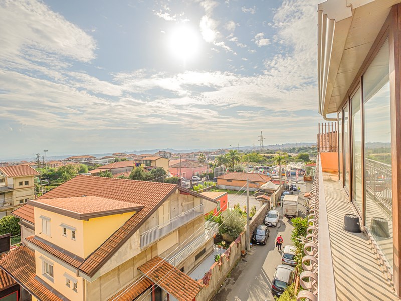 Il disimpegno ci accompagna in tutta la casa così composta: una prima camera che può essere adibita a cameretta per ragazzi oppure a studio, camera da letto comoda provvista da cabina armadio e da un terrazzo dove potersi deliziare dalla splendida vista sul golfo di Catania, il bagno spazioso è con doccia, cucina con sgabuzzino, lavanderia, il salone-soggiorno provvisto di grandi vetrate anch'esso con terrazzo panoramico, è la vera chicca di tutta la casa.