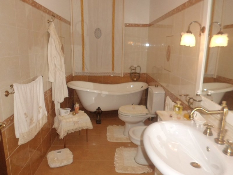 Ingresso/salone, tre camere da letto, doppi servizi e cucina abitabile in muratura.