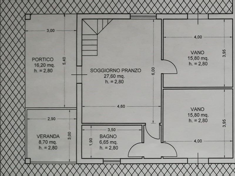 Piano terra (mq.80) – cucina/salone, due camere da letto e bagno + portico (mq.25).